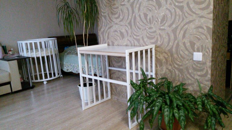у нас сначала сын родился, а потом дочка) И все у нас у девочки, как у принцессы) Вот и кроватку ей купили овальный трансформер ПремиумБэби 7 в 1 (и делаю у нас, в России). Уже мечтаем во всю как она подрастет, мы пересоберем кровать в стол со стульчиками и она будет там с куклами устраивать чаепития)) Мы не стали брать белую (наверное потому что уже растет бандит)))) у нас цвет Венге, выглядит очень красиво)