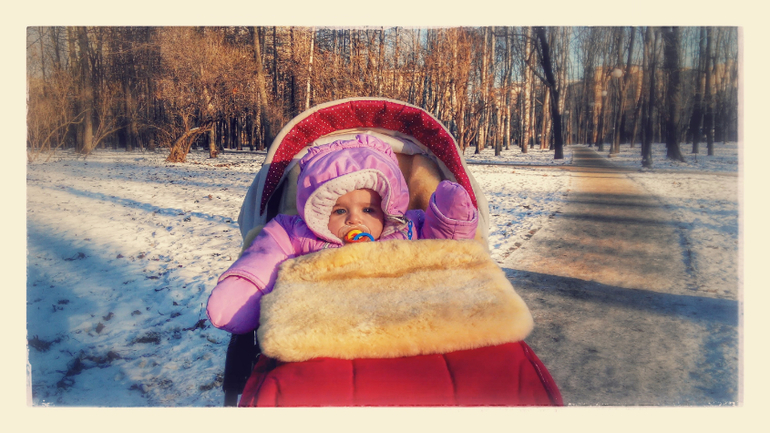 родились в начале апреля. На первую зиму был Pilguni (у них 240 гр утеплителя Изософт) + меховой конверт (это вещь!)- можно из цельных шкурок (дорогой), можно из "чеса" (подешевле, к примеру womar)
