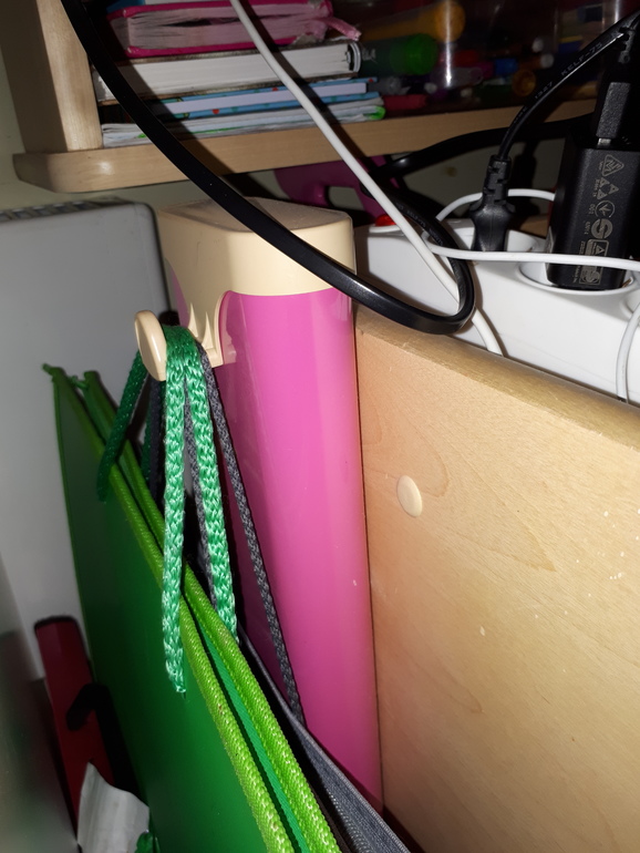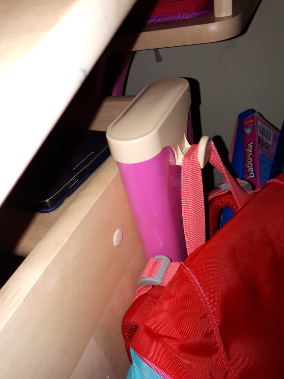 Меня смущают пластиковые крючки, на мой взгляд от веса рюкзака с учебниками они быстро обломятся, нужно что то более жесткое по конструкции. Ну и ножки стола должны быть более надежными и устойчивыми