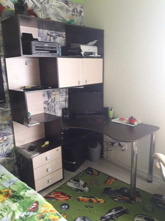 Вот ниже у Анастасии мне стол больше понравился, там столешница более устойчива. И выездную подставку для клавиатуры мы тоже сняли. Углы заклеили изоляцией от детей.