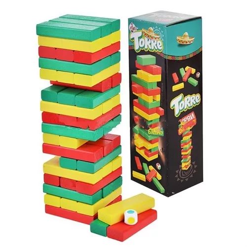 У нас дженга с цветными палочками и кубиком. Около 1000 покупали. Пользуемся уже второй год, все отлично.