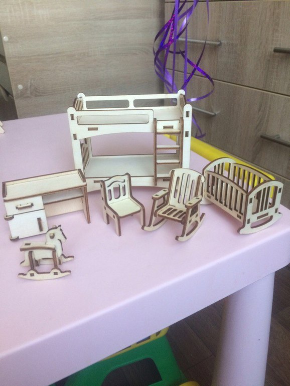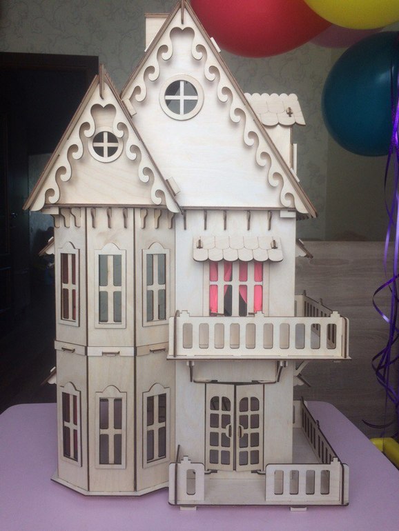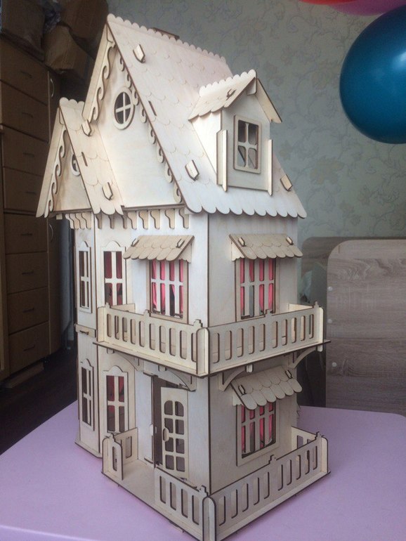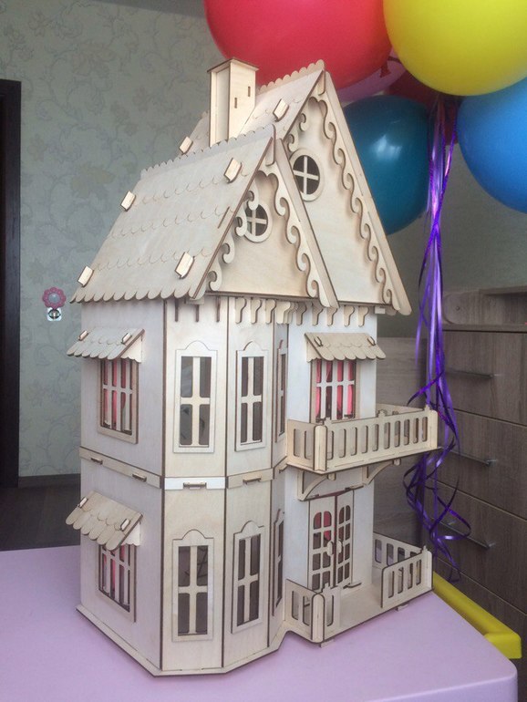 Сегодня у моей старшей доченьки день рождения. Уже три года, большая девочка. Думаю можно уже играть и в такие домики. Домик-конструктор, я собрала сама часа за 1,5. Мне понравился очень, думаю поиграем вместе ))) В комплекте идет мебель во все шесть комнат, собрать успела только в одну (детскую). Сам дом из фанеры и его можно покрасить, это думаю для деток постарше уже развлечение (мы пока и так поиграем).