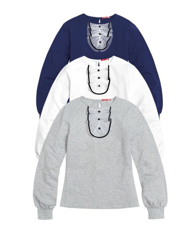 Моей дочке удобнее всего были водолазки обычные белые и голубые (у нас синяя форма). Никаких пуговиц, что бы не капошилась с ними после физкультуры. Да и если красками испачкает или пластилином, в столовой компотом обольют не так жалко, они не дорогие, можно новую купить если не отстирались. С коротким рукавом кофточку одели раза 2, холодновато было, сначала отопления нет, а зимой не жарко было)))
