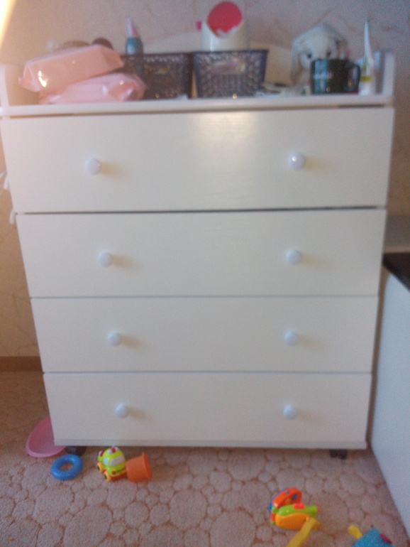 Без комода не обойтись, я так считаю. Пеленалку я сняла т.к мне она не понадобилась. Брали дешевый за 4 или 5 тыс...не помню. Минус этл крепление дна у ящиков. Муж все усиливал, т.к двп проваливалось((((. А так все норм. Сейчам вам фото постараюсь найти. Нашла...фото не очень, но суть какой понятно)