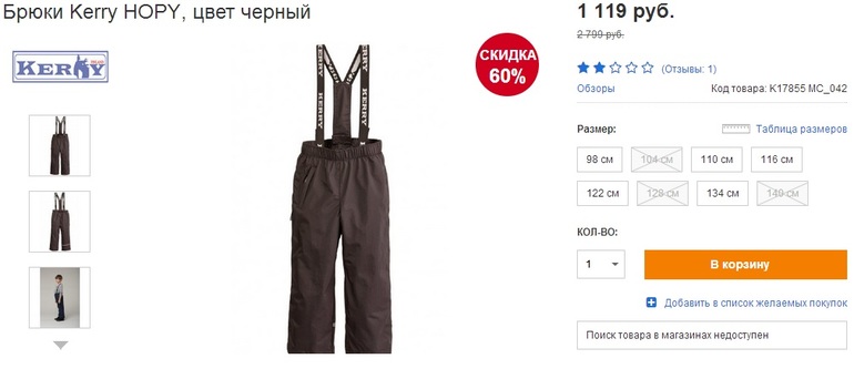 Детская одеждаПришёл мне сегодня полукомбинезон Kerry из Мазы. Весна/осень без утеплителя на хлопке. Вот такой, 98 размера:
