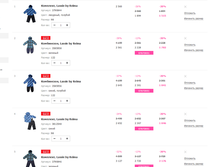 спасибо. Там промокод какой-то есть? цены на сайте у них выше.. И не все есть. Или не там смотрю? Например,