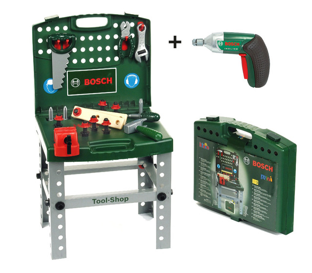 Еще рассматриваю вариант просто набора инструментов, если не найду верстак. Тут пока присмотрела Keenway My Workshop, те же Smoby Black&Decker либо Klein Bosch. Есть у кого-нибудь такие? Прочные?