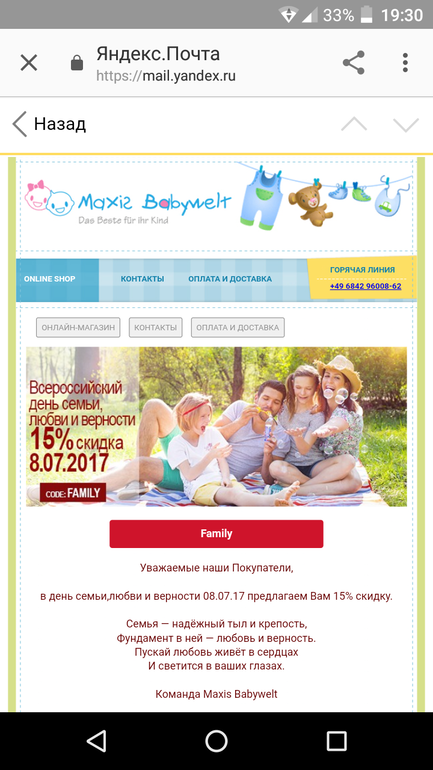 Постою послушаю, хочу автокресло заказать. А 15% как получить? На почту вам прислали?