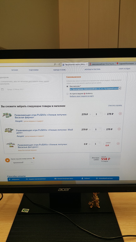 Нужно чтоб все три нпбора были в одном месте,т е забирать из одного магазина. Промо я не вводила