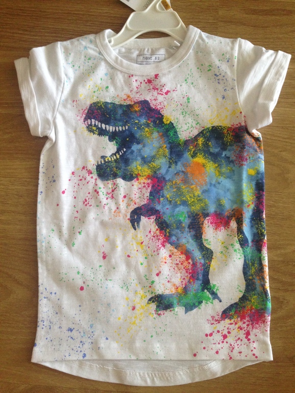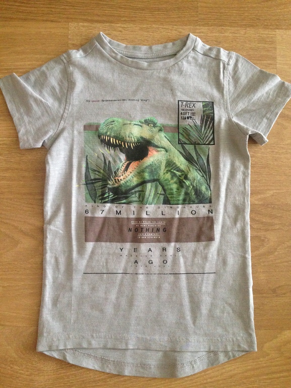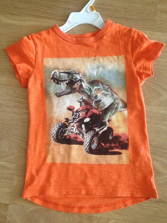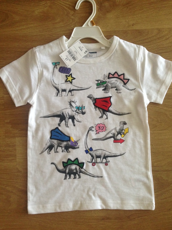 Доча обажает динозавров! Всп про них знает. Но в основном одежка с динозаврами на мальчиков. Я уж ей в НМ мальчуковую футбу прикупила.