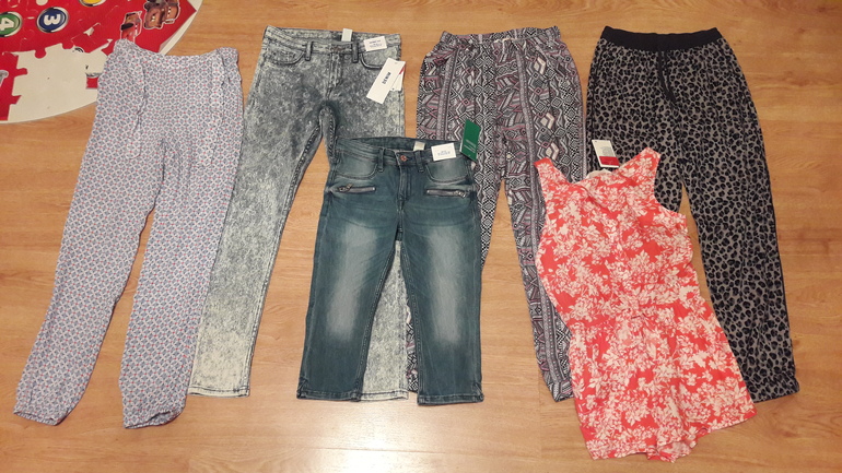 Распродажи. Скидки. Акции.Сегодня удачно накупила всего в H&M. По 250 и 350 руб. Все на фото размер 140. Также было много шортиков, простеньких сарафанчиков, байковых рубашек в клетку (по 350 р.) На мальчиков таких приятных цен не увидела - от 500 руб. На маленьких девочек наборы лонгов по 2 шт за 500 р., кофточки, платьица по 350 были, но особо в ассортимент не вникала, т.к.интересовала одежда на взрослых девочек.