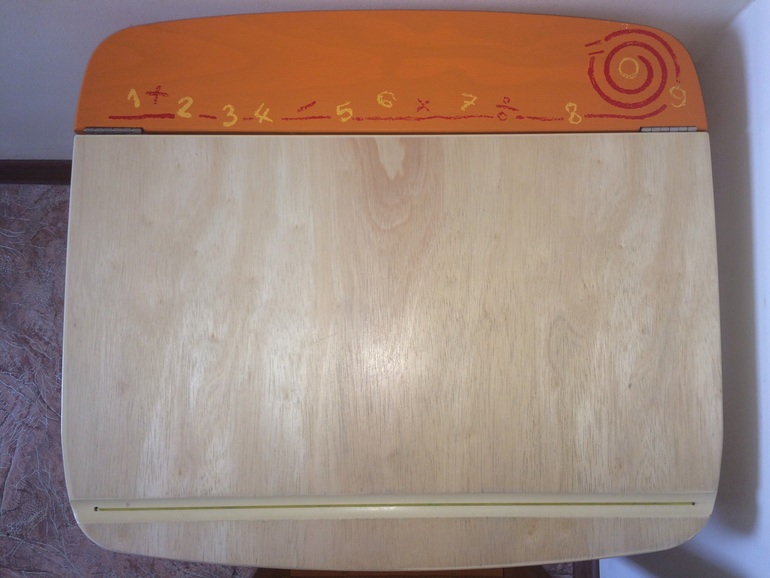 У нас простецкий, деревянный был. Ребенок подрос, он в негодность пришел, было не жалко выбросить. Позже покупала с металлическими ножками, побольше, но мы им можно сказать и не пользовались.Второй ребенок родится планирую купить растущий стул со столешницей и для маленького нормально и школьнику удобно сидеть, делать уроки.