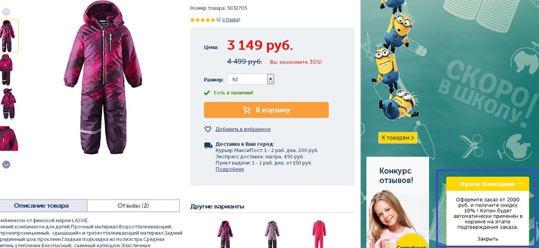 я недавно на lassieshop 92р. взяла со скидкой 50% куртка 180гр, штаны 100, не знаю, правда, остались ли там размеры ещё