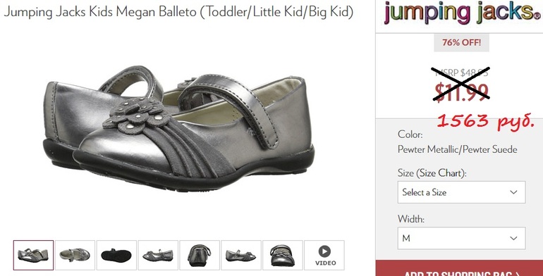 Нажмите на ссылку рядом с выбором размера Size Chart, там вылезут таблички размерности по полу и возрастам. Выбираете Kid и смотрите по миллиметрам или евро-размерам. Я своей заказала 1,5 Little Kid на ее 32-й размер.