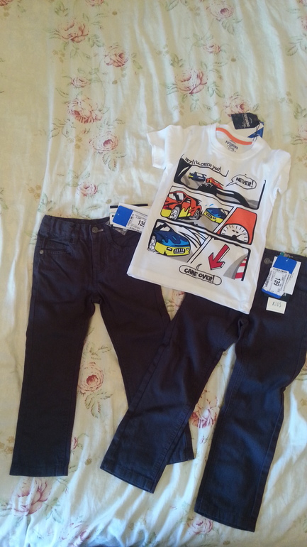 Только хвасты! (одежда и обувь)Брючки чинос графитового цвета по 139р, на бирке написано что для девочки, но я взяла мальчику. Мне кажется они 100% унисекс. Футболка 199р, маломерит на размер наверное.
