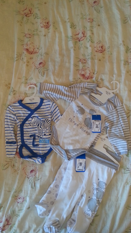 Боди с зеброй 149р, комплект из 2х боди 249р, комплект из 2х штанишек 199р.