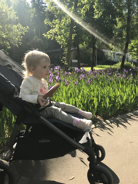 Ещё нюанс, ребёнок у Вас маленький, учтите что может чуть сползать в коляске сидя. Вот так моя сидела в обычном Снапе