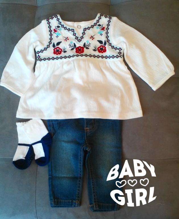 😂 мы с 2-х месяцев в джинсиках и кофточках сверху. Низ или комбезик или боди с колготочками. Костюмчик велюровый. Правда все по размеру😁 и мягкое...ткани натуральные))) А комбезики дома)))