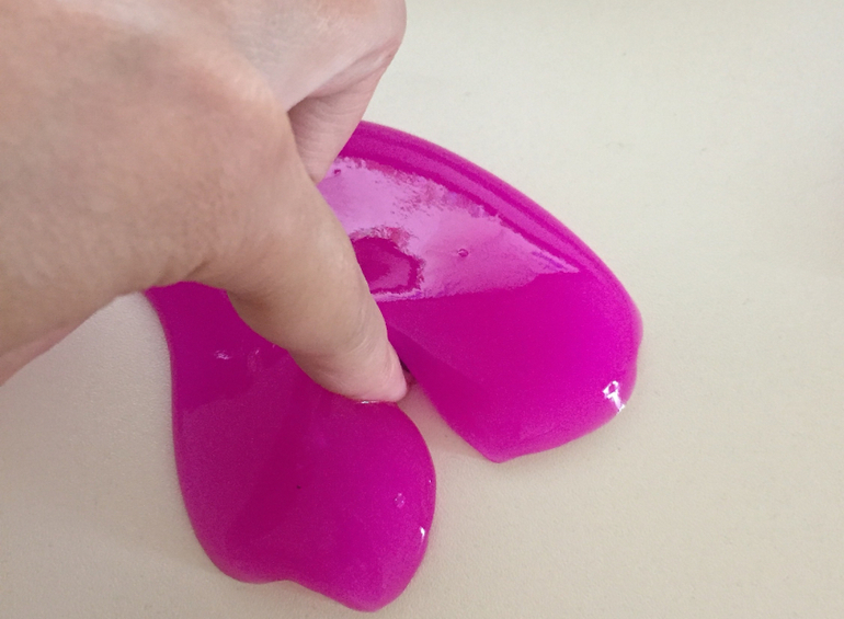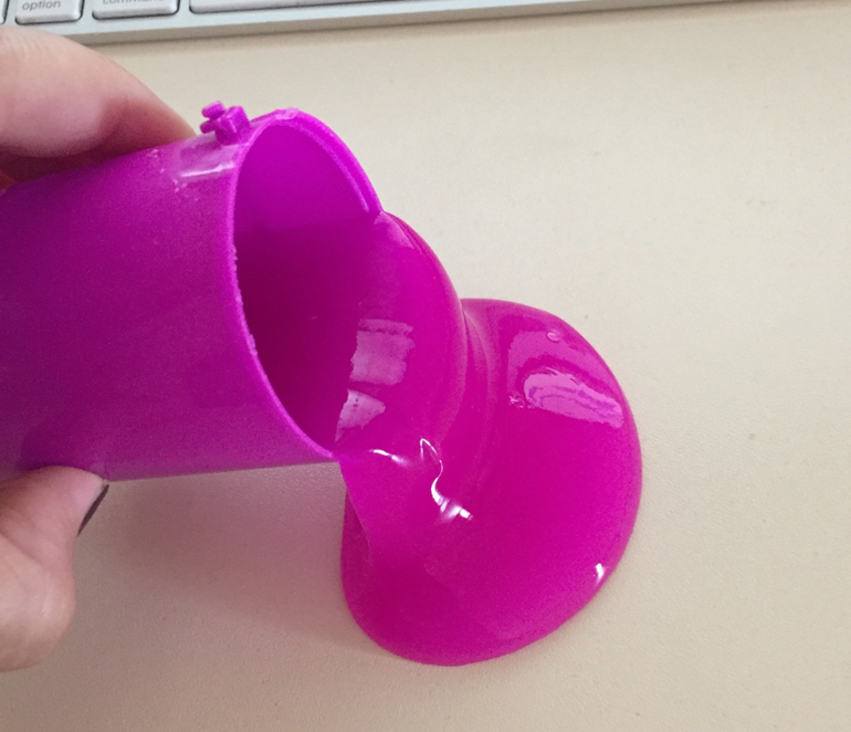 Мы купили в автомате такую ядрено-желтую , называлась "лизун", открыла дома, а она вся растеклась , еле отмыла потом ковер, раковину, руки((( дрянь отменная