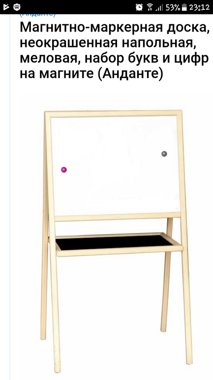 Товары для детского творчестваВсем привет! Девушки, помогите, выбираю дочке магнитную доску- мольберт, напольную. Понравился в инете вот этот вариант: