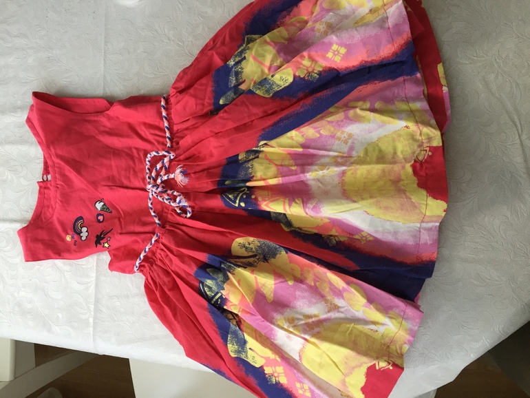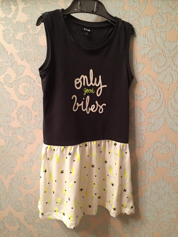 сарафан для старшей той же фирмы вроде не маломерит) почему я купила следующие 2 платья в дм для меня большая загадка. Качество, дизайн, в целом все очень убого, но была 70 процентная скидка, словно мощными розовыми очками, застелившая мне глаза)))