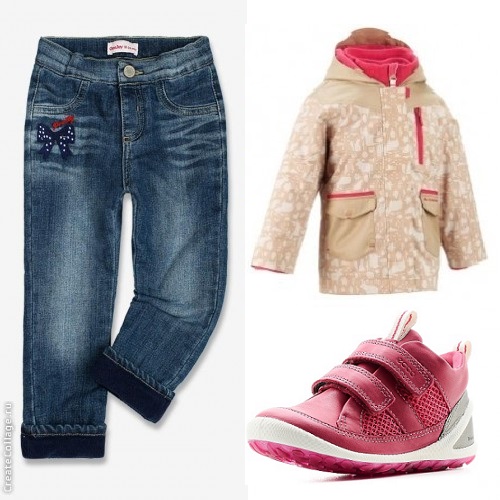На относительно теплую погоду: джинсы простые или с флисовой подкладкой, куртка Декатлон (рр 2 года). Отличнейшая куртка, носить будем второй сезон. Непромокаемая непродуваемая ветровка на сетке со съемной флисовой подстежкой. Капюшон плотно прилегает к голове. Носили все лето (без флиски))). На ноги - ботинки кожа на коже или кроссовки (не купила еще, все ищу. На фото Экко - очень мне пригнянулись, жду размер на WB).
