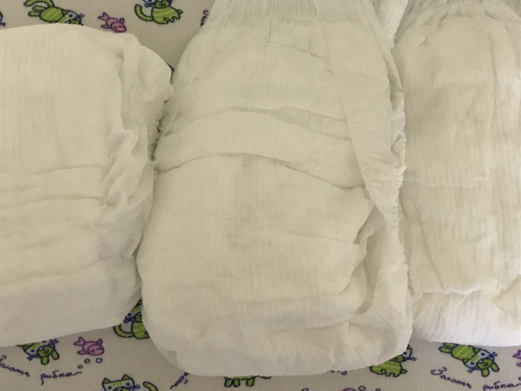 Внутренняя поверхность тоже отличается. Премиум имеет разную выпуклость для лучшей впитываемости. Спереди мелкие бороздочки, а задняя часть подгузника крупные ячеистые бороздочки, для лучшей впитываемости стула.