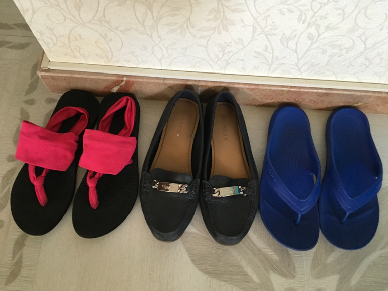 Чуть-чуть обуви. Все в два раза дешевле от изначальной цены. Потрясли скидки на Кроксы. Во всех фирменных магазинах шла акция две пары за одну цену на сланцы. Обошлись примерно в 14 у.е. Нахватала себе и на подарки. И хотела сказать пару слов о розовенькой паре слева. Невероятно удобные и суперлегкие - купила их в аптеке за компанию с наколенником в самый разгар моих проблем с коленкой. Они спасли меня на длительных экскурсиях. Качество соответствовало цене - 10 у.е. ( подошва слегка истончилась), но идея великолепна - идёшь как-будто босиком.