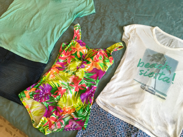 Шортики по 9 у.е., купальник - 12, футболки по 7 ( изначально стоили 20)...вот их не рекомендую - нахватала всех цветов, купившись на лёгкий, тонкий хлопок.. продукция некой aerie, приобретенная, кстати, в их фирменном магазине. В результате после трёх раз на ткани появилась плешь и характерные комочки...плюс ко всему замучилась их фотографировать.. никогда не думала, что фоткать тряпки так трудно..