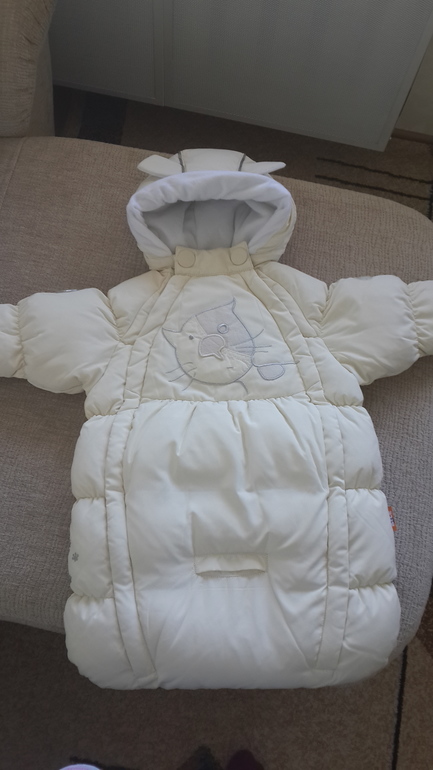 У нас был бенеттон пух, отличный, с прорезью для автокресла. Отходили всю зиму в размере 56