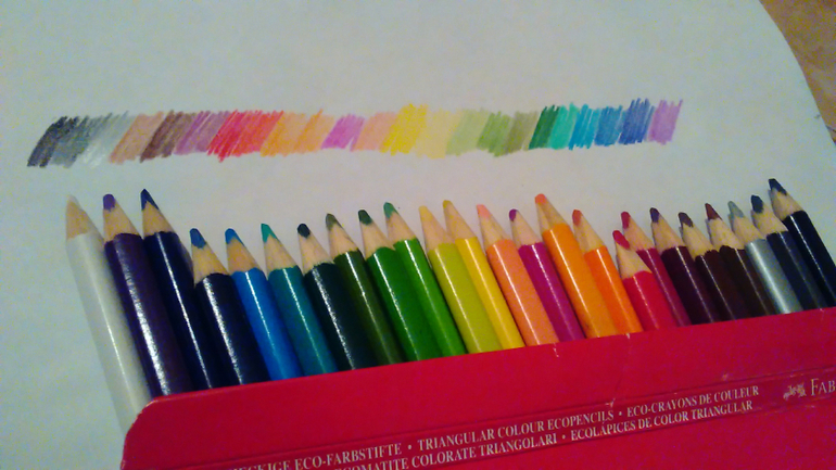 Яркие, мягкие,удобно лежат в руке! Много синих! По яркости эти карандаши ничем не уступают faberам, мой вывод для себя: буду брать colorino kids(цена меньше),ну и сравнение двух цветов