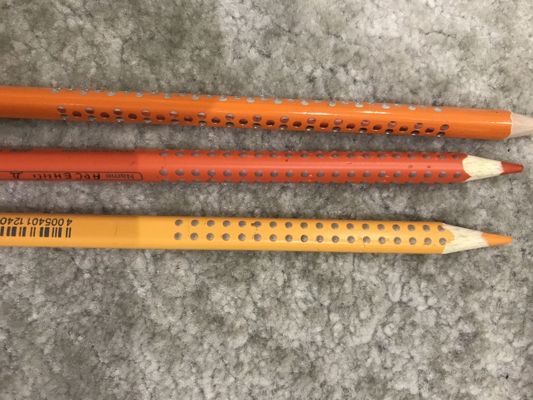 Для сравнения: карандаши более дешёвые , дарили в саду на выпускной , тоже нескользящие в руке.