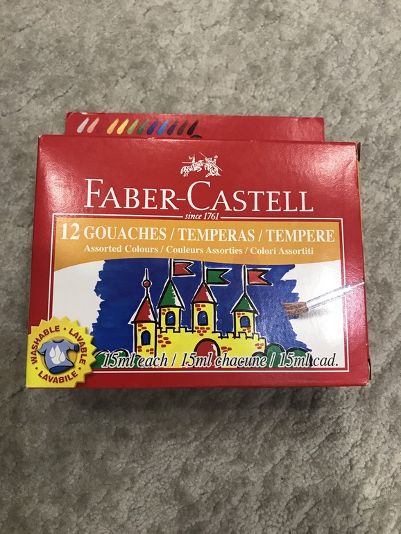 Гуашь. Ею мы ещё не пользовались. Она практически не пахнет. Производитель заявляет, что она так же отстирывается с одежды ( для меня очень актуально ). Цвета в баночке довольно яркие.