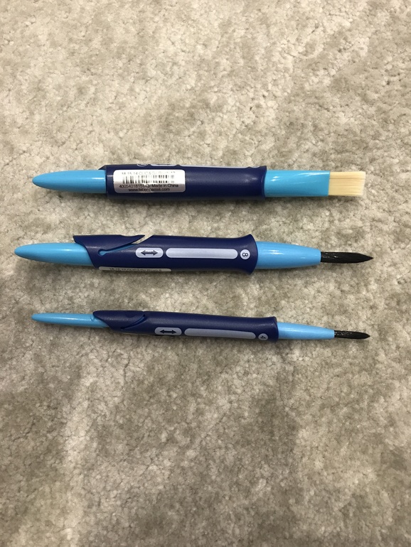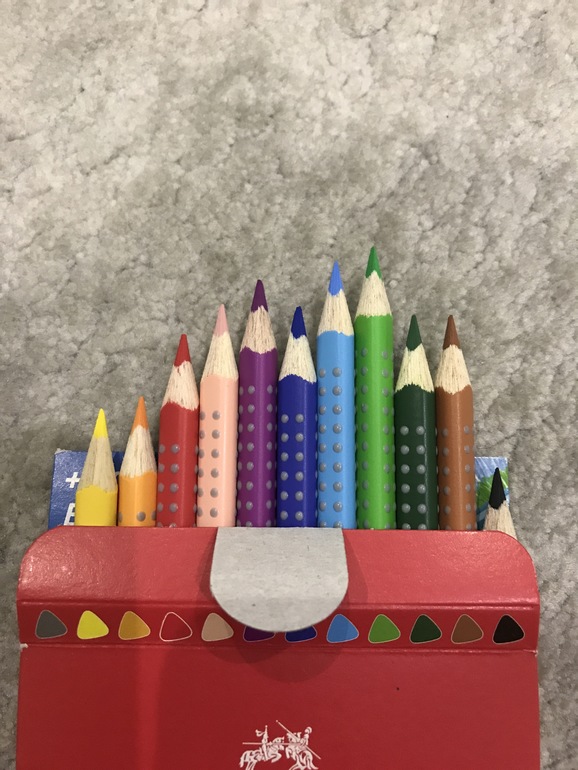 Первый год в подготовишке я замучилась точить и вечер покупать карандаши. Погуглив, поняла, что надо пробовать карандаши дороже ( и кстати сколько я брала дешевых, по стоимости вышли как одна пачка этих). Первые карандаши приехали напрямую из Германии, вот в таком чудном пенале