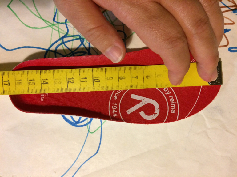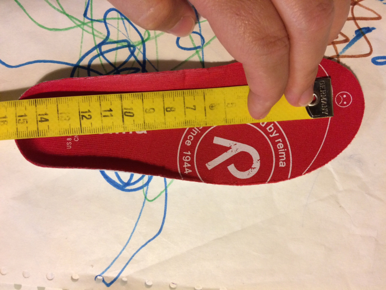 Я ставлю ступню на бумагу, перпендикулярно полу держу карандаш и ставлю отметку, гдп пятка начнается. Пи ней как раз и загиб идет на стельке, потому загиб надо учитывать в общую длину стопы когда подбираешь обувь