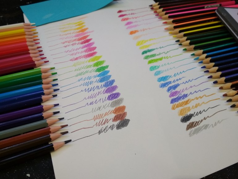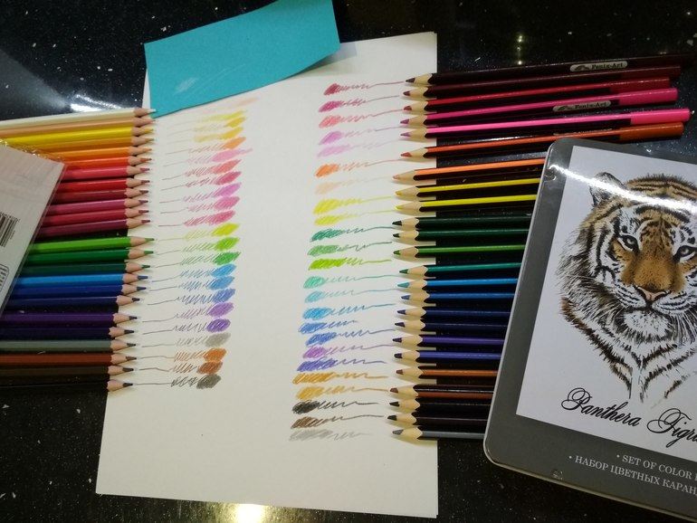Сразу отмечу, что ФеникАрт уже работающие карандаши, многие не заточены до "иголочки". Поэтому линии вышли толстоваты. Хотя если заточить, то будут такими же тонкими, как у Ашановских.