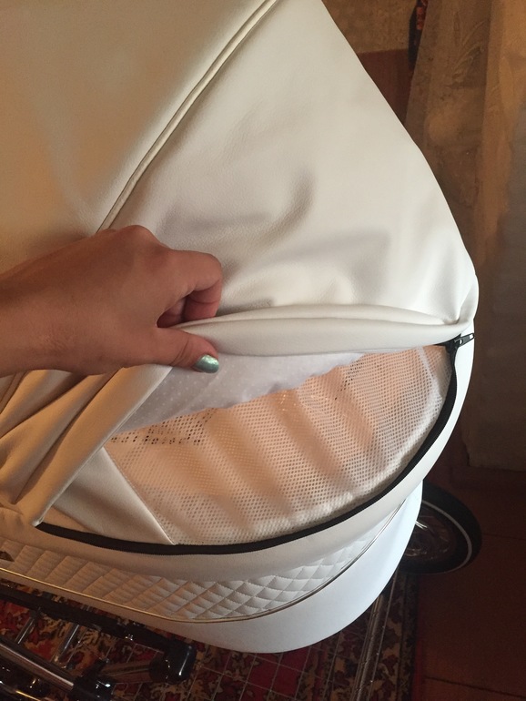 Отворот у накидки достаточно высокий и жёсткий. Дно у люльки деревянное (без вентиляции). Матрасик в комплекте достаточно плотный.