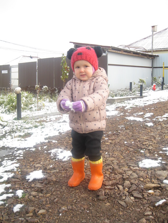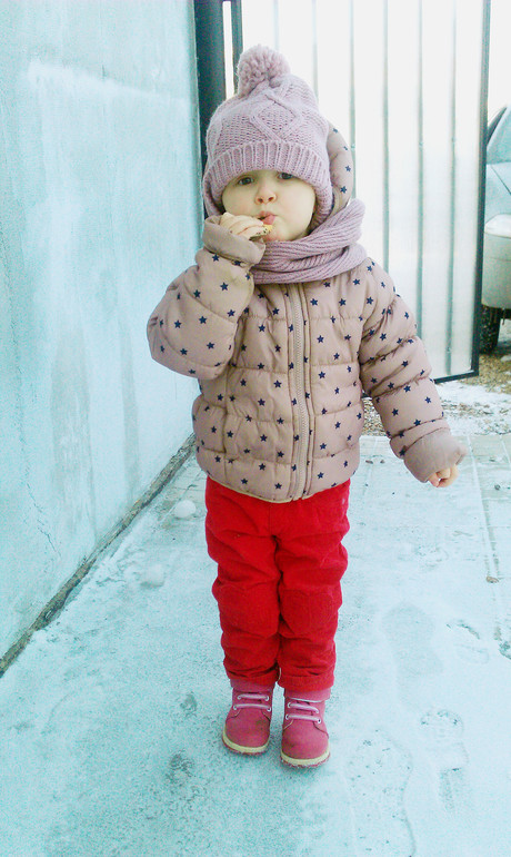 Это 31 октября прошлого года, прогноз посмотрела сейчас- пишут что -2 днём было. Первый снег выпал. На дочке сапоги резиновые обычные с шерст. носком(до купленных ЭВА тогда не доросли ещё), куртка тонкий синтепон, граммов не знаю- ну она прям тонкая, мне здесь писали что она на +15 идёт))) Под неё домашнее что-то, лонг скорее всего, и штаны спортивные. Сейчас не вспомню, но наверное ещё и колготки. Под шапкой хб подшлемник, ибо шапка большая и падала на глаза, а ребёнок требовал именно её)