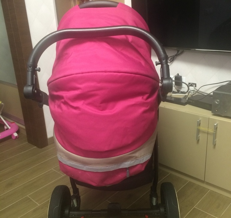 Люлькой очень довольны, у нее очень просторное спальное место, ребенка можно укутать во все теплое и свободно уложить внутрь люльки. Капор опускается на кнопке и не трещит как у других колясок. В капоре встроена вентиляция, которая также послужило хорошим смотровым окошком для любопытной малышки. С внешней стороны есть регулировка высоты наклона подголовника, можно также бесшумно опустить головку, если ребенок начал засыпать.