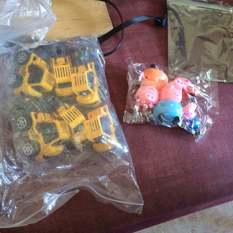У нас были наклейки (с заданиями которые) и пазлы. Еще восковые карандаши, выкручивающиеся, из фикс прайса и блокнот.