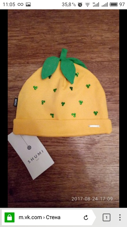 Шапочка Shumi.Тоже с wb.Без личных скидок 480 руб.Качество хорошее,но маломерит.На голову 52,размер 52-58 прям вот-вот.Но дочке очень понравилась,поэтому выкупили.