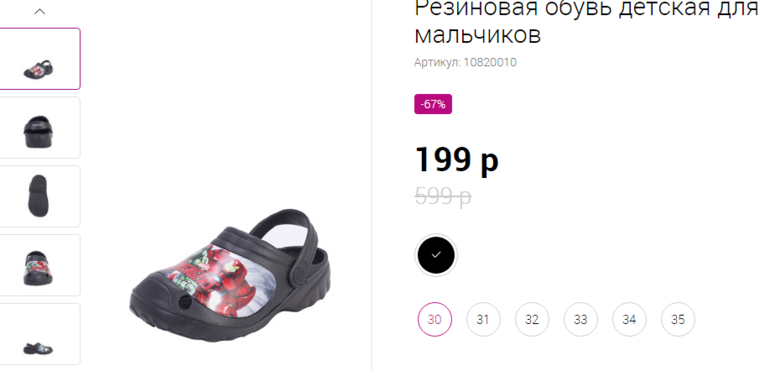 Наталья, заказывайте их на сайте,так как в магазине у них цена 399 руб. Когда будете забирать заказ в магазине, то на кассе скажите, что хотите списать бонусы кари. Тогда они вам выйдут 130 руб. Еще можно будет списать спасибо от сбербанка. Идут в размер. тут