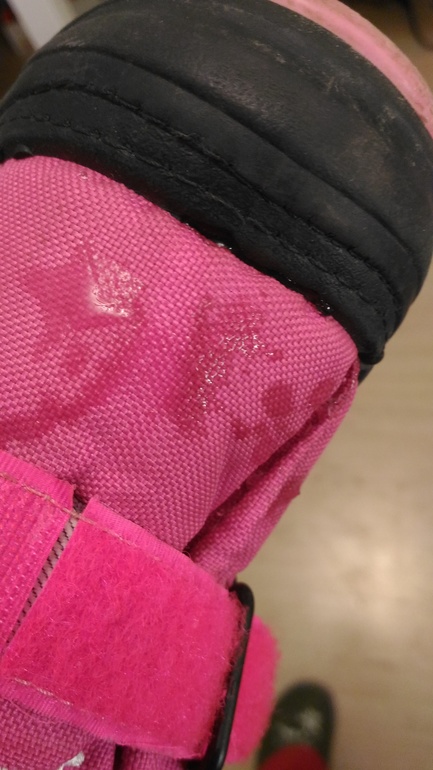 У нас такие, но на липучке. Ткань промокает. Тогда промахнулась с размером, несколько раз надевали "постоять", тогда дочка еще не особо ходила. А этой осенью будем носить. Весной она в них около -3 на шерстяной носок. В этом году думаю, что попробую надеть от +3-5.