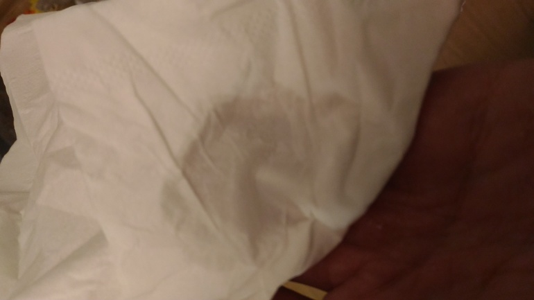 Вот это только накапала: Вот это через 15 секунд. Уже начало впитываться. А вот легкое прикосновение салфеткой изнутри после 10 секундной струи воды. не видно, но салфетку можно выжимать. Сохранить