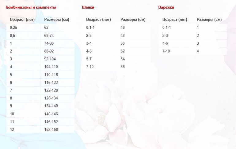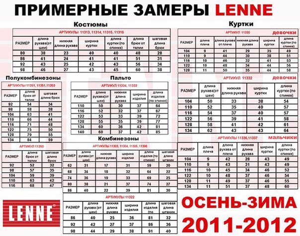 Размеры, замеры, вес (коляски, одежда, обувь) - сводные таблицы, информация