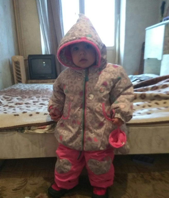 Детская одеждаПриехали к свекрови, а там нас ждёт подарочек!) Комплект мне понравился, вот только очень громоздкий, сейчас дочь в нем еле ходит. Размер 24 мес. нам 17 мес. Как думаете поменять на размер меньше или всё-таки к зиме будет нормально?