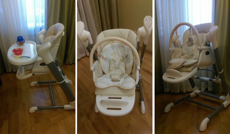 Из удивительного там есть шумовой датчик, при плаче ребенка качели начинают укачивать и включается музыка, мне понравилась эта функция, но я качаю пока что только под присмотром.