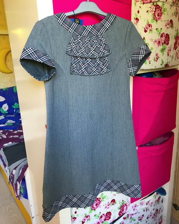 Форму выбрали серую в розовую клетку. !! Купила 2 сарафана и одну однотонную юбку.