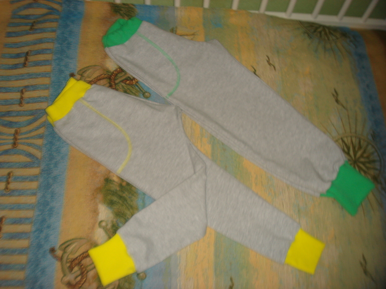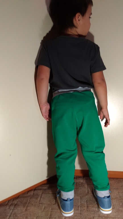 Мы носим такие же, самосшитые ведь? Очень удобный фасон, зимние и осенние штаны прямо на них надевает ребенок сам.
