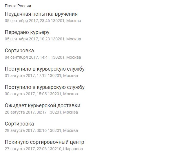 В начале августа я заказала обувь на сайте YOOX, сначала долго не отправляли, но 19 числа посылка наконец вылетела в Москву. Как видно из трека, с 28 числа я не могу дождаться ее доставки. 4.09 не выдержала и позвонила на горячую линию, оказывается. курьера даже не назначали. Поставили дневную (9-18 часов) доставку на 05.09. Я весь день проторчала дома, отменила занятия у сына. Ни звонков, ни смс-уведомлений кроме утреннего, что посылка передана курьеру. В 19:30 снова позвонила на горячую линию, где меня заверили, что курьер еще работает и обязательно привезет. Я прождала до 2 часов ночи (конец интервала ночной доставки). Тишина. Наутро открываю информацию по отслеживанию и что я вижу? "Неудачная попытка вручения" в 23:46! Снова звоню на горячую линию, где мне удивленно сообщают, что доставка была отменена по моей же просьбе перенести дату!!! Видимо подталкивают к тому, чтобы забирала сама с пр.Вернадского. Но у меня 2 ребенка, один из которых инвалид, и я физически не могу с ними проехать пол-Москвы за немаленькой посылкой, которую должны были доставить на дом!